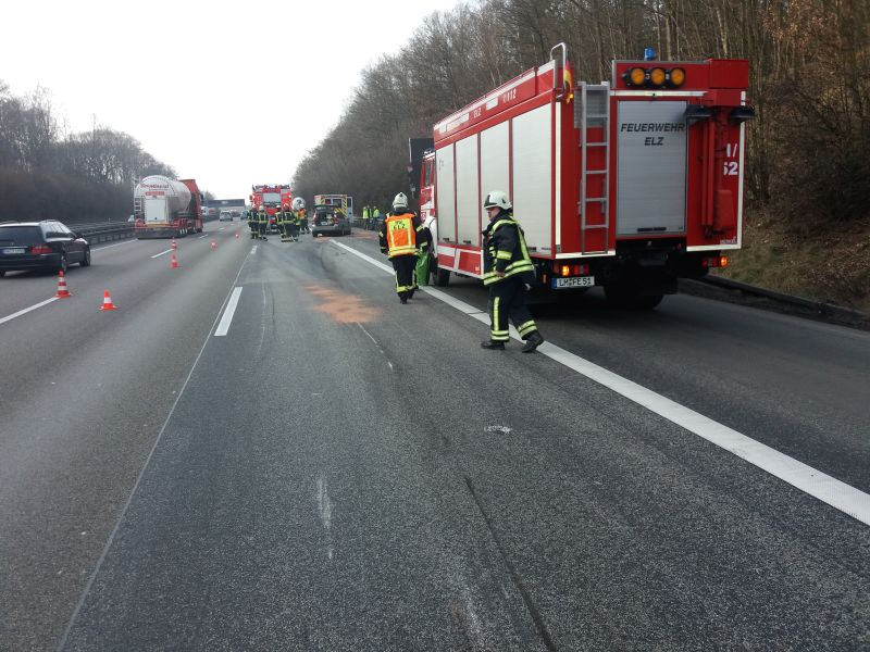 Am Dienstag, 6. März, wurde die Feuerwehr Elz zunächst um 15:59 Uhr zu einem Verkehrsunfall, bei dem laut Notruf-Meldung ein Fahrzeug brennen sollte, auf die Autobahn in Fahrtrichtung Köln alarmiert.