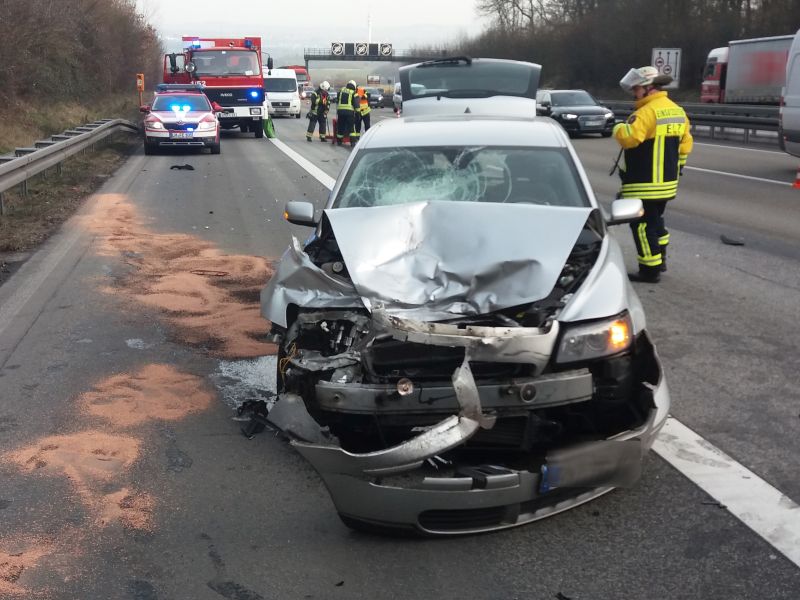 Nur wenig später gab es in Sichtweite der Einsatzstelle auf der Gegenfahrbahn in Fahrtrichtung Frankfurt einen dumpfen Schlag.