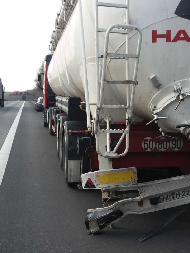 Ein Lkw war in Höhe der zweiten Radarbrücke auf einen vorausfahrenden Lkw aufgefahren.