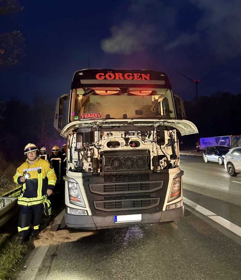 Ein in Rauch gehüllter Sattelschlepper sorgte am Dienstag, 03.12. um 16:37 Uhr für eine Alarmierung des Autobahn-Löschzugs der Elzer Feuerwehr.